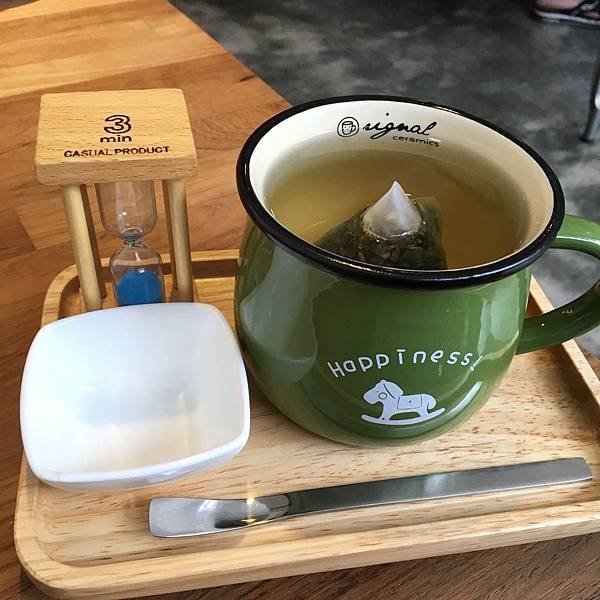 因為我是一年四季都喝熱飲的人所以我是點熱的,沒想到送來還有附一個沙漏 !