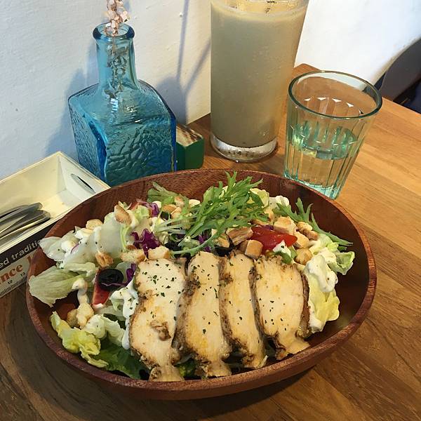 雞肉配沙拉感覺就可以增肌之類的 ( 是說也沒有剛健身回來啦要怎麼增肌 )