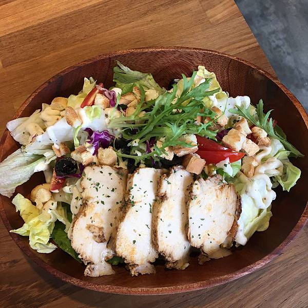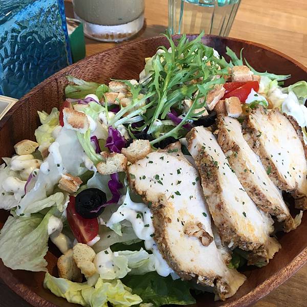我朋友不吃生的然後我又覺得單純凱薩沙拉好像不夠豐富,所以我們就選了雞肉!