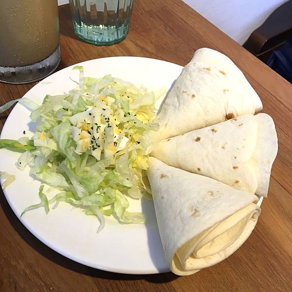 旁邊的高麗菜絲上面白白的不是起司而是酸奶,吃起來沒有過酸的感覺 . 甚至沒什麼味道