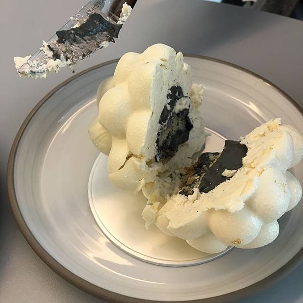 而在黑香草cream跟外殼中間的香草內餡口感吃起來像是奶酪的綿密版,