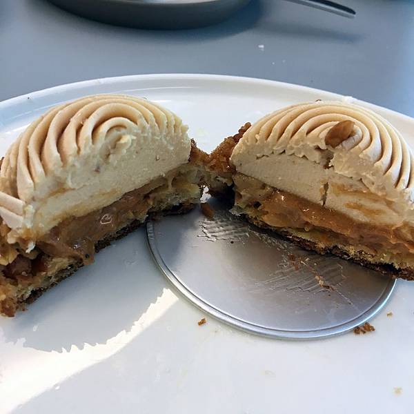 這一圈一圈的榛果甘納許裡面有法式奶油醬跟臻果醬,