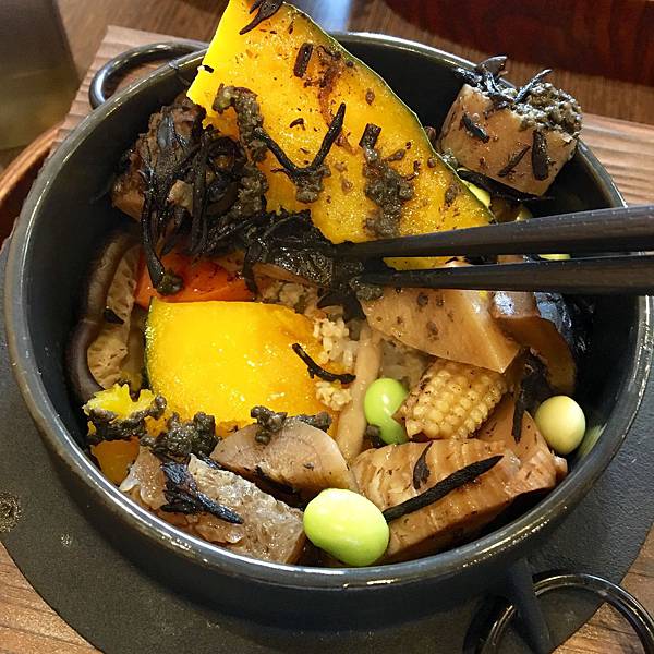 下面還有吃到小小塊的地瓜跟芋頭,他們的芋頭雖然炊煮過但不會像火鍋一樣變得爛爛的