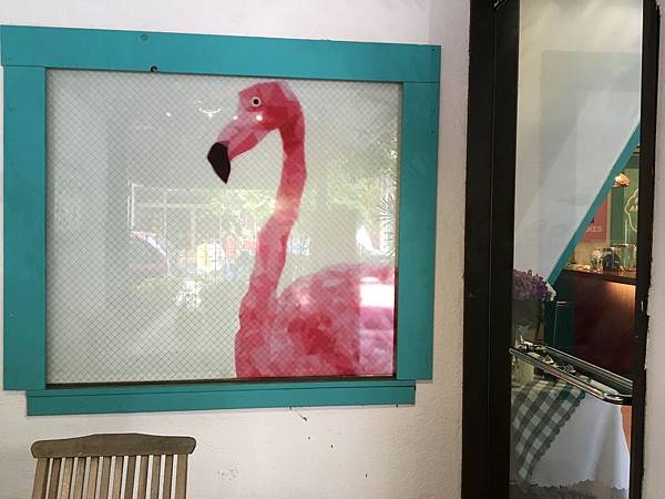 不知道店家在這彩繪這隻紅鶴的本意是什麼?