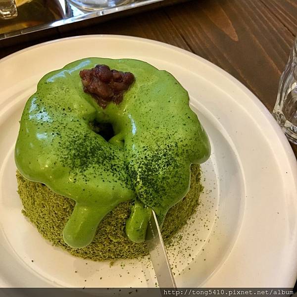 不僅上頭的抹茶醬濃厚甘醇 . 後味帶點苦韻更是讓人回味無窮