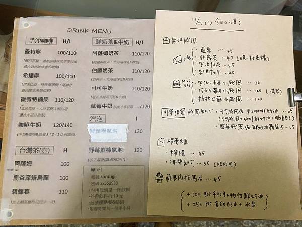 左邊飲品的地方是固定的 . 右邊則是每天看店家提供而微調。