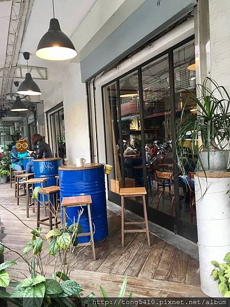 店家也有戶外的座位,是用汽油桶當作桌子。