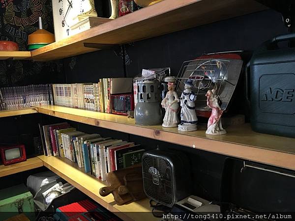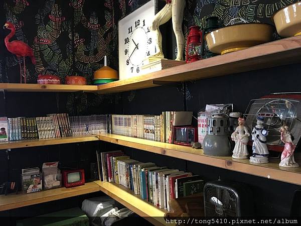 ▲ 廁所出來的櫃子還有擺放一些店家的收藏品
