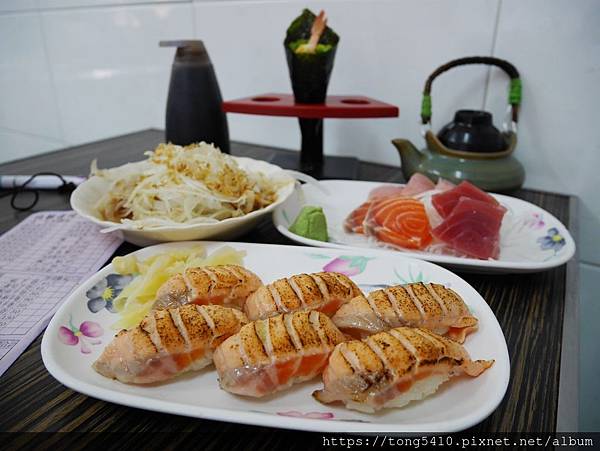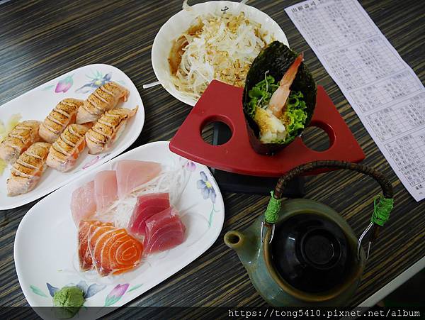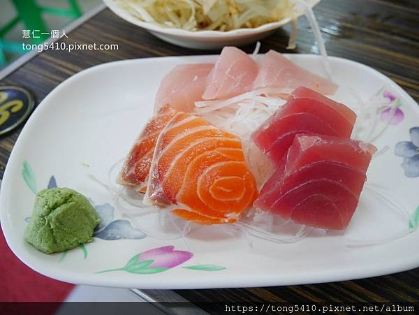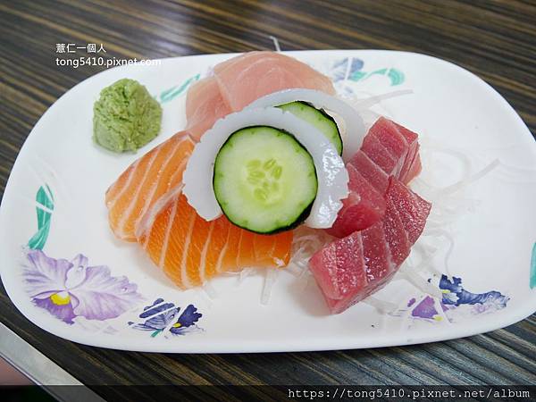 ▲會吃的到四種生魚片,鮭魚鮪魚旗魚,