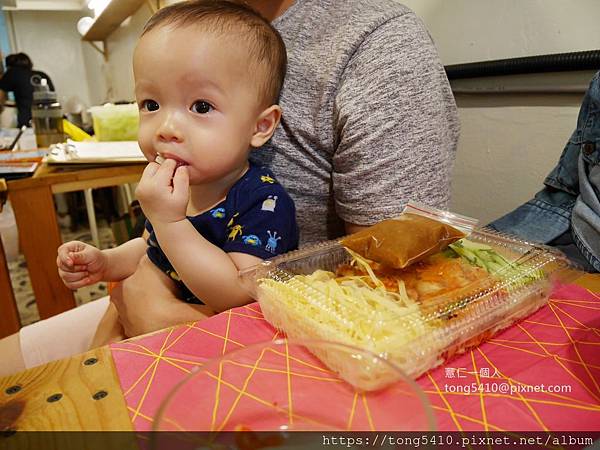 ▲小北鼻吃他們涼麵裡的蛋絲吃得很開心