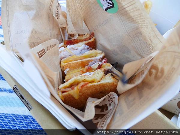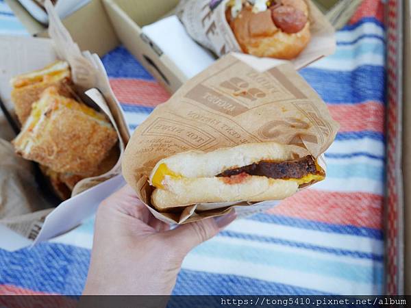 ▲這款是鹹鹹甜甜的口味,培根加上半熟起司