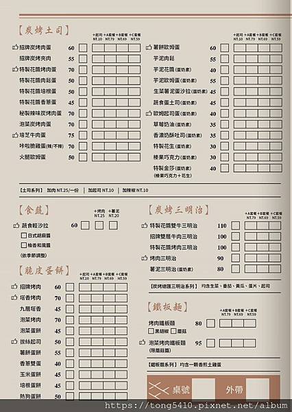 ▲菜單品項 有炭烤吐司 炭烤三明治