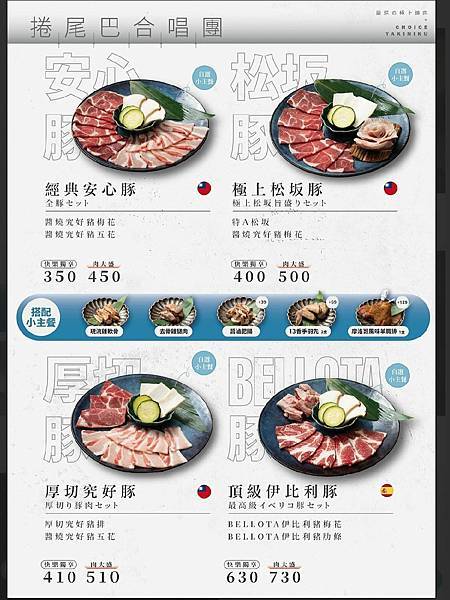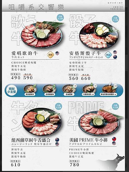 有三種品項 : PRIME牛小排 / CHOICE板腱 / 醬燒牛五花